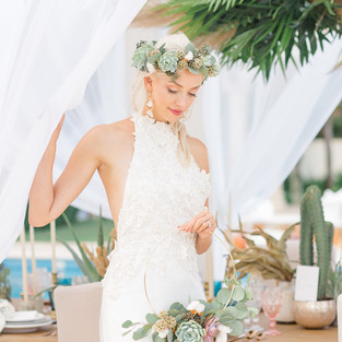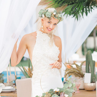 Destination of Dreams 'This wedding inspiration shoot is abundant in dreamy, elegant, boho inspiration. A perfect harmony of talented British and Mexico wedding suppliers. Taking inspiration from the native Blue Agave plant, otherwise known as the base ingredient for 'Tequila', to create an aspirational love story for a bride’s dream destination wedding. Through innovative floral designs and styling, captivating scenery and effortlessly chic bridal wear, an inspiring tale of a bride lost in her own imagination was captured'.