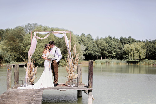Inspired a lot by the farm setting of Brookend and the surrounding meadow and lake. She loved the idea that a couple could go out and collect their wedding decor, wandering through meadows cutting handfuls of grass and flowers to dry. We wanted it to have a very intimate feel. So with that in mind, thoughts went to keeping things seasonal and local. She also wanted to mis textures together with different styles of bottle and vessels and using florals sparingly on the table to keep the design