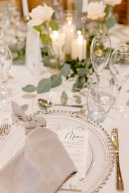 Props provided by Miss Carlysle and Co - Sage Green Cheesecloth Table Runners, Silver Beaded Charger Plates, Grey Napkins (Knotted), Plain Glassware - Tumblers, Champagne Flutes & Wine Glasses, Glass Cylinders with LED Pillar Candles, Silver Cutlery, Silver Candlestick Holders with LED Candlesticks and Sage Green Chair Drapes with White Ribbon.