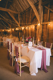 How we created the look: Dusty Pink Napkins (Knotted), Gold Cutlery (Starter Forks, Starter Knives, Main Forks, Main Knives, Dessert Spoons and Dessert Forks), Gold Beaded Charger Plates, Gold Rimmed Glassware (Tumblers, Champagne Flutes and Wine Glasses), Ivory Cheesecloth Table Runner, Chiffon Mauve Chair Drapes with White Ribbon.