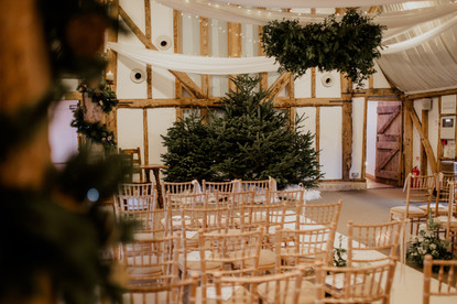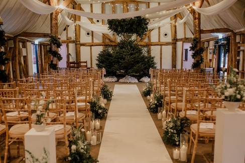 Indoor Ceremonies:Â Utilise the barn's rustic charm by adding festive drapery and floral arrangements at the altar.