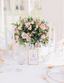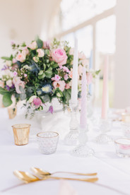 With the pastels in the floral arrangement, we wanted to also bring the pastel colours through with the napkins, candlesticks and chair drapes, being paired with gold accents.