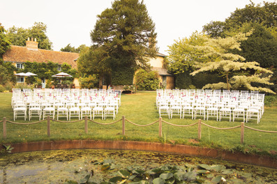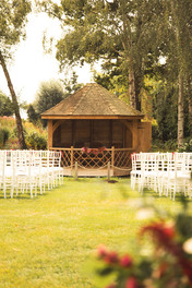 Z & A opted for a Summerhouse Ceremony for their August wedding. It was absoltely stunning! They used red ribbon for the chairs they wanted to be reserved.