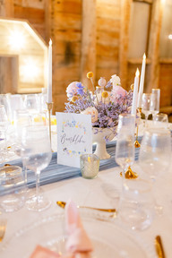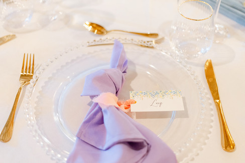 Items provided by Miss Carlysle and Co - A Dusty Blue Cheesecloth Table Runner, Gold Candlestick Holders with LED Candlesticks, Tealight Holders with LED Tealights, Clear Beaded Charger Plates, Gold Cutlery, Gold Rimmed Glassware - Tumblers, Champagne Flutes & Wine Glasses, Napkins (Dusty Blue, Lilac, Yellow, Dusty Pink), Chair Drapes with Ribbon (Pink, Dusty Blue, Lilac & White).